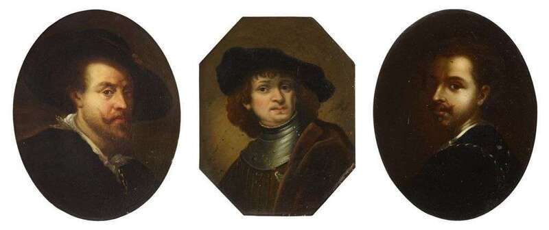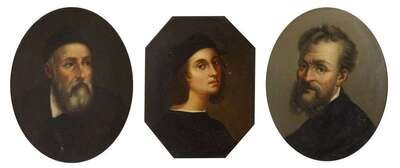 PAIR SET OF THREE SELF PORTRAITSCONTINENTAL SCHOOL (19TH CENTURY) SIR PETER PAUL RUBENS, REMBRANDT VAN RIJN AND SIR ANTHONY VAN DYCK; AND TITIAN, RAPHAEL AND MICHELANGELO