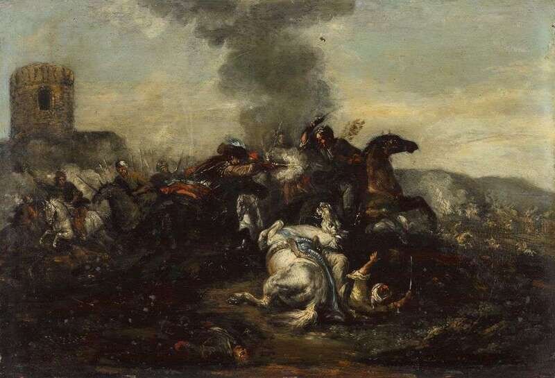 FOLLOWER OF JACQUES COURTOIS, CALLED 'IL BORGOGNONE' (FRENCH 1621-1676) CAVALRY SKIRMISH