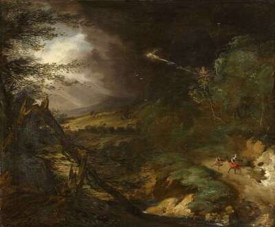 BRITISH SCHOOL (18TH CENTURY) STORMY LANDSCAPE WITH FIGURES