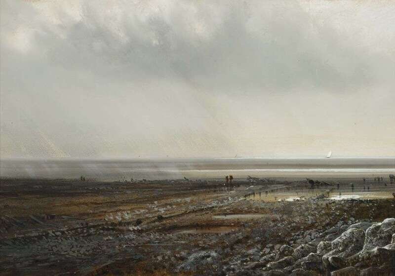 Inscribed in pencil verso 'Samuel Palmer, Low Tide, Margate,' watercolor and body color on paper