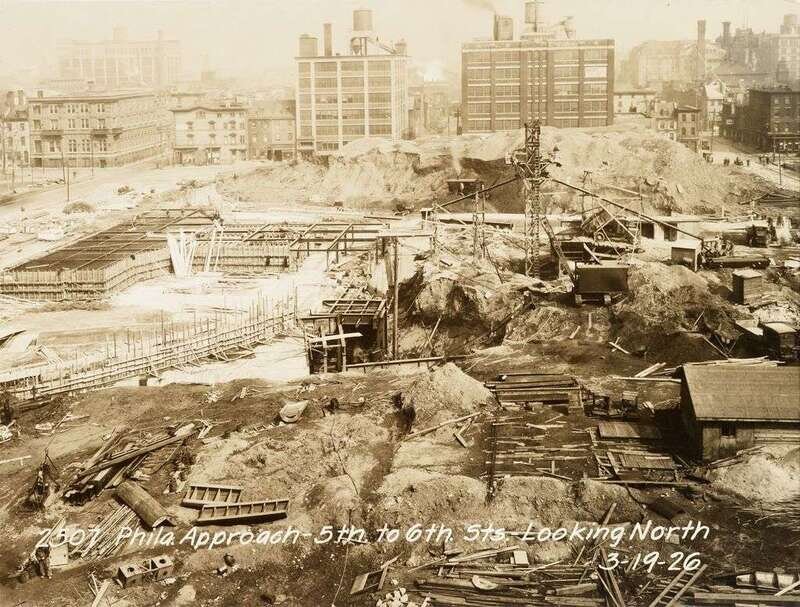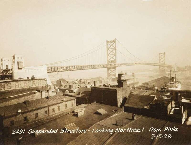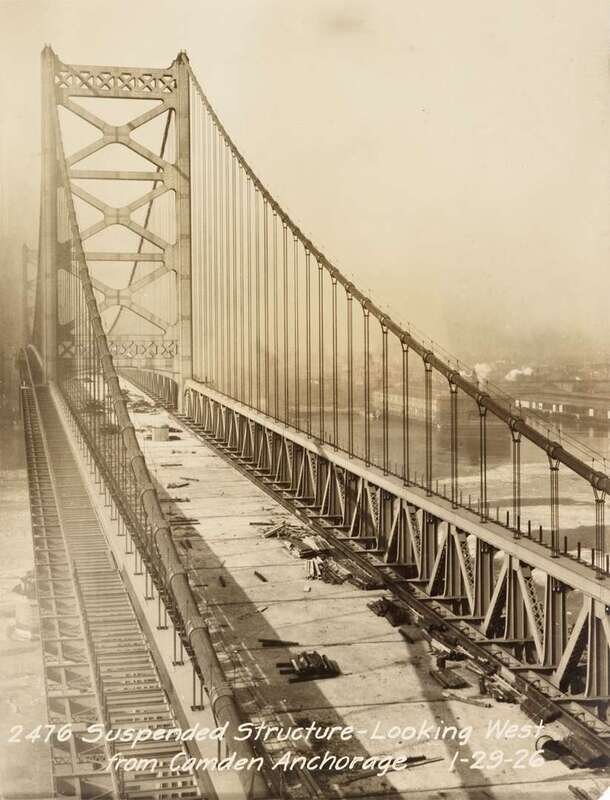 This rare album includes images during all stages of the bridge's construction, including demolition, setting beams and supports, paving, inspection, and building of the toll booth, as well as several street scenes and city views of both Camden and Philadelphia. The only other known copy of an album of this type documenting the bridge construction exists in the archives of the Smithsonian.