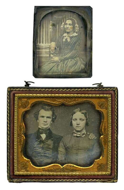 Quarter (3), ninth (3), and sixth (8) plate daguerreotypes, tintypes and ambrotypes depicting men and women in various poses. Most cased but some missing covers.