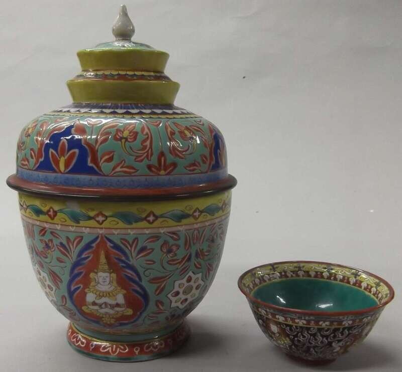 Toh porcelain enamel jar with cover and bowl 19th century