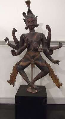 Indian polychrome lacquer figure of a ten-armed deity, probably Shiva 19th century