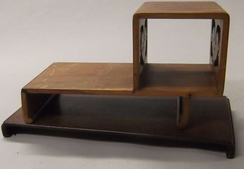 One of scroll form, together with a steped ruyi carved twin platform stand.