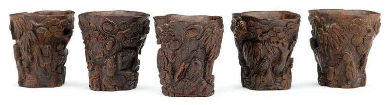 Five Chinese eaglewood wine cups, chenxiang mu qing dynasty