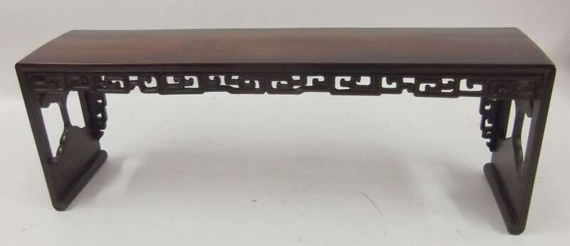 Of three board construction with huiwen apron and inward scrolling feet, top plank huanghuali and with other hardwood elements.