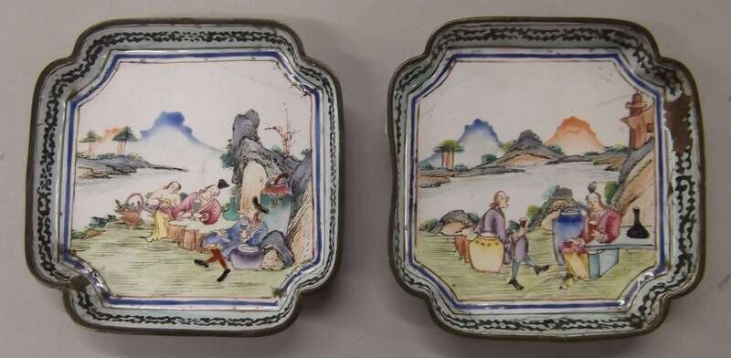 Pair of Chinese canton enamel trays shangxin mark, 18th century