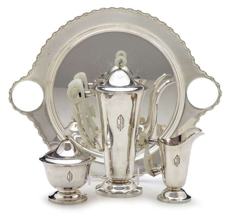 Chinese white jade belt buckle and silver service 18th century