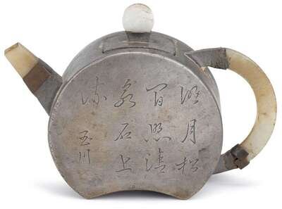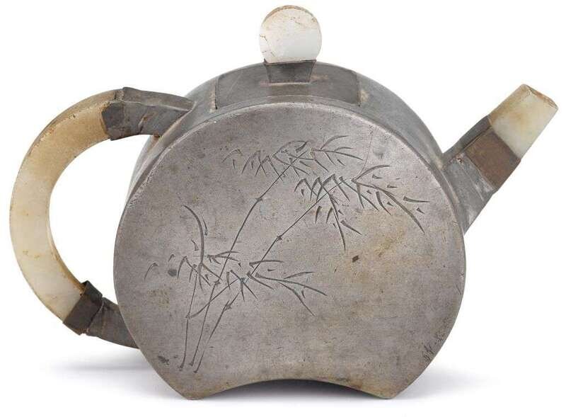 Chinese jade and pewter encased yixing teapot fan luzeng mark, daoguang period