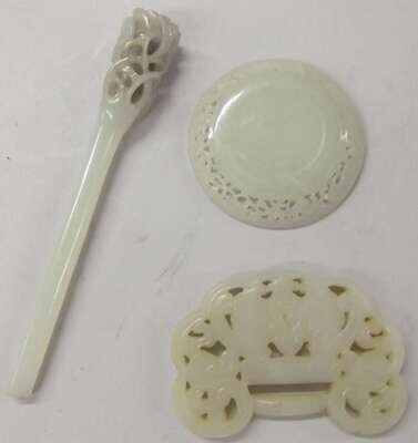 Including a hair pin, a ruyi head form lock pendant, and half a reticulated pomander.