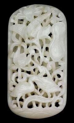 Chinese white jade reticulated plaque