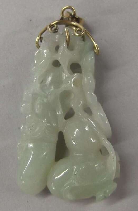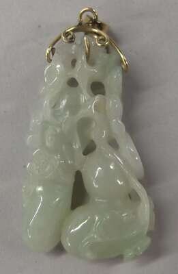 Chinese jadeite and 14k yellow gold mounted pendant late 19th century