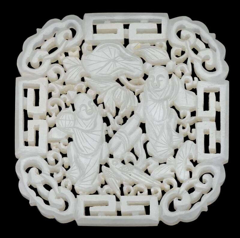 Chinese white jade reticulated plaque 18/19th century