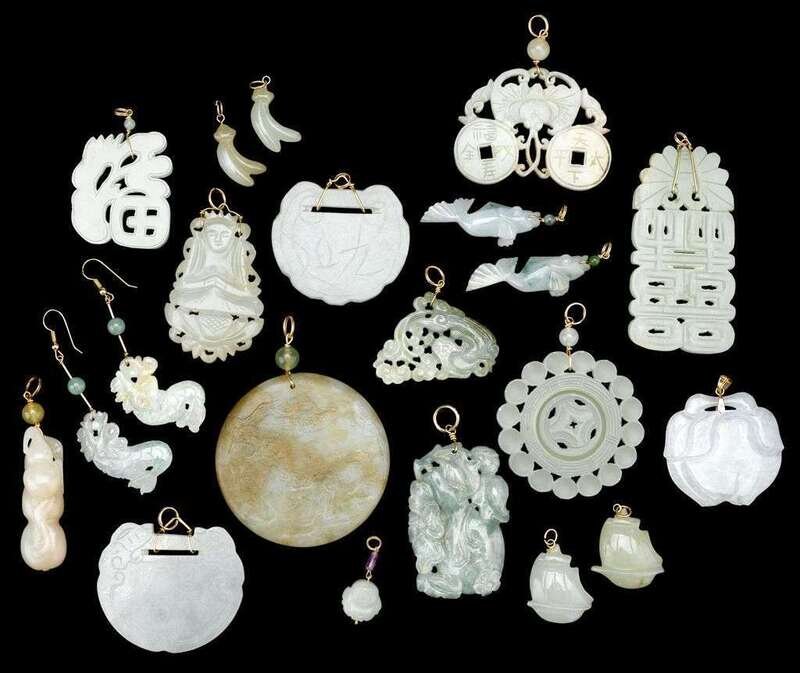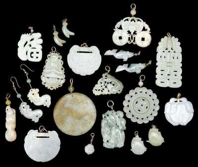 Approximately Eighteen Chinese jade and jadeite items of jewellery qing dynasty and later