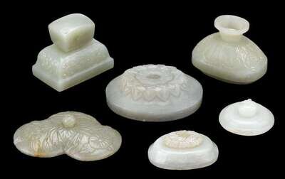 The grouping of six covers consisting of oval, circular, square, and mughal forms.