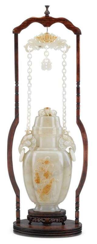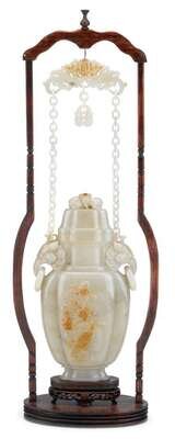 Chinese white jade hanging vase and cover