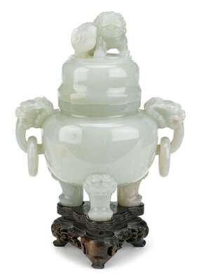 Chinese celadon jade tripod censor and cover