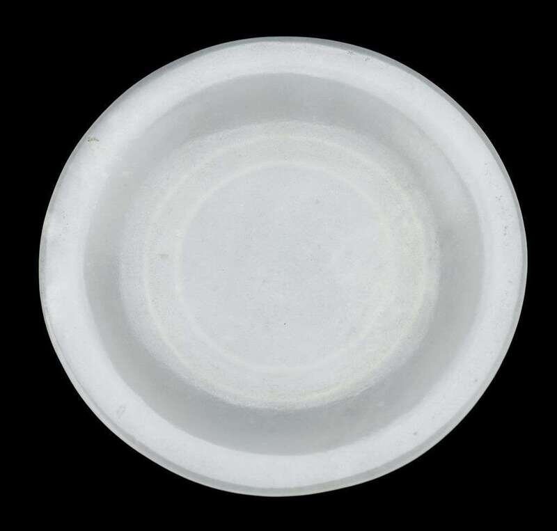 The translucent saucer is of even hue and possesses slightly raised foot.