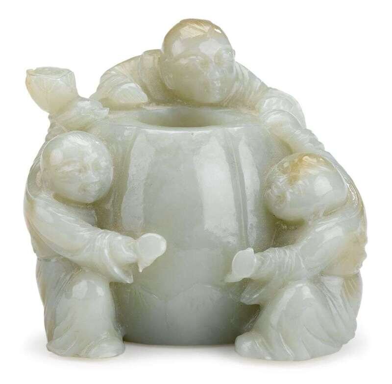 Chinese celadon jade three-boy water coupe 20th century