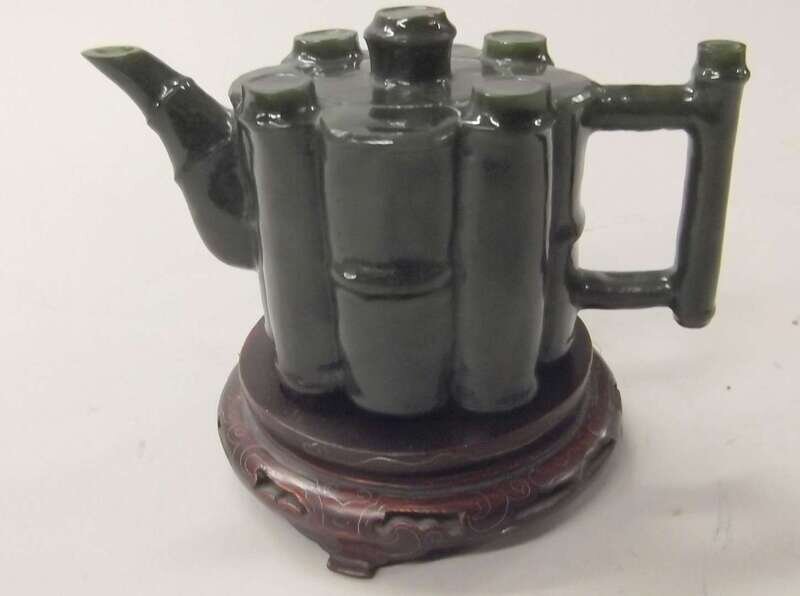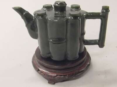 Chinese spinach jade bamboo form teapot and cover 19th / 20th century
