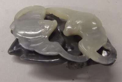 Chinese white and black jade fu bat carving