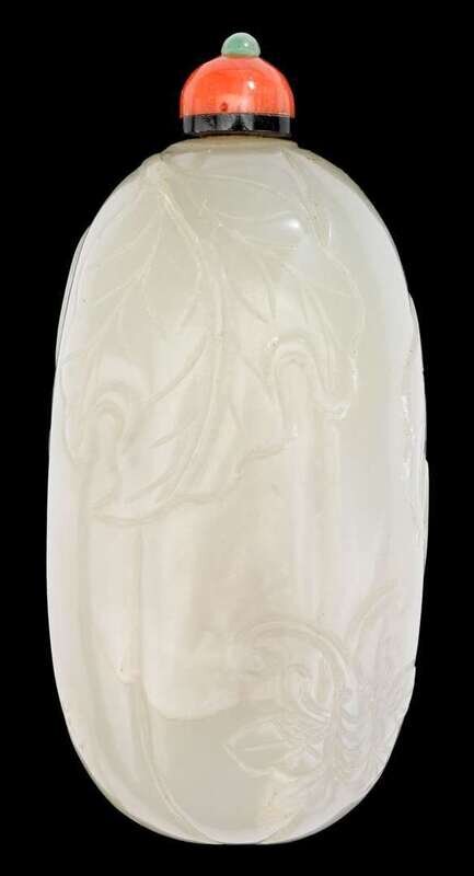 Chinese white jade melon snuff bottle
