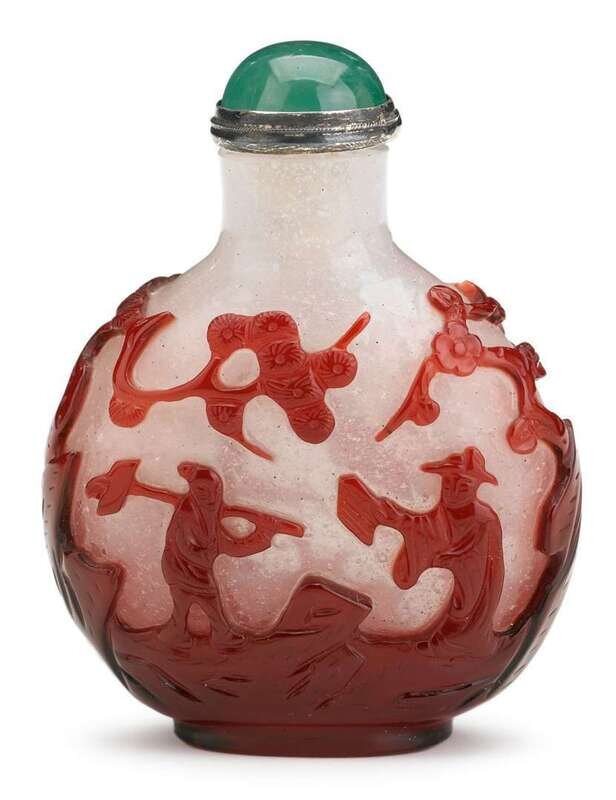 Chinese red on snowflake glass overlay snuff bottle 19th century