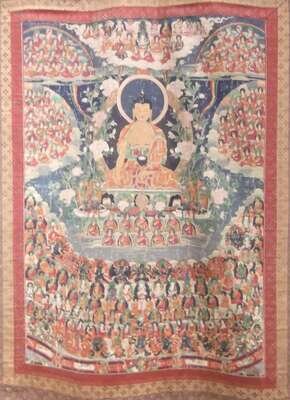 LARGE SINO-TIBETAN THANKA 19TH CENTURY MEDICINE BUDDHA