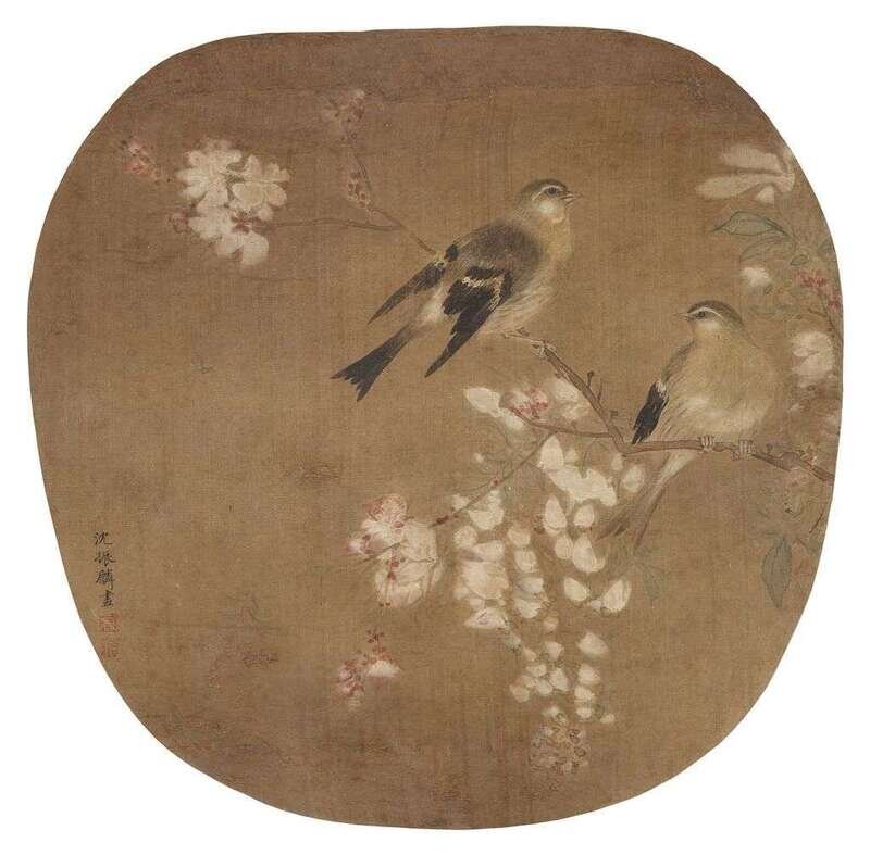 SHEN ZHENLIN Bird and peony fan painting