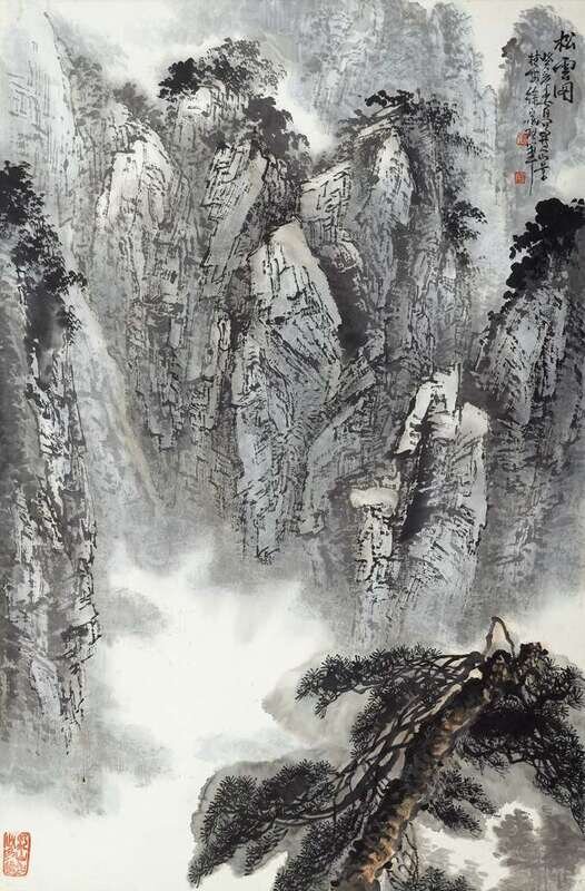 XU JIA JUE DATED 1983 Pine trees on misty mountain