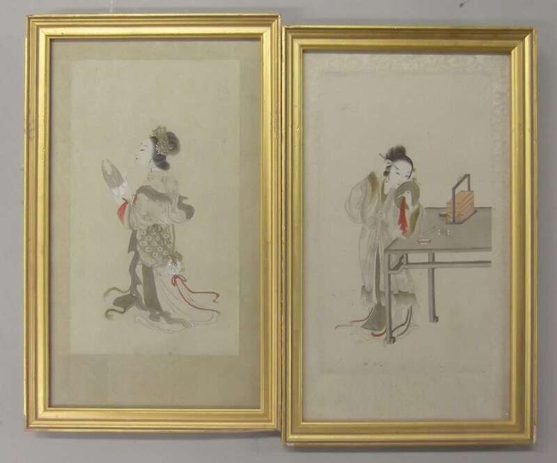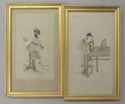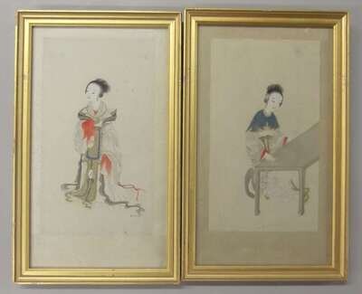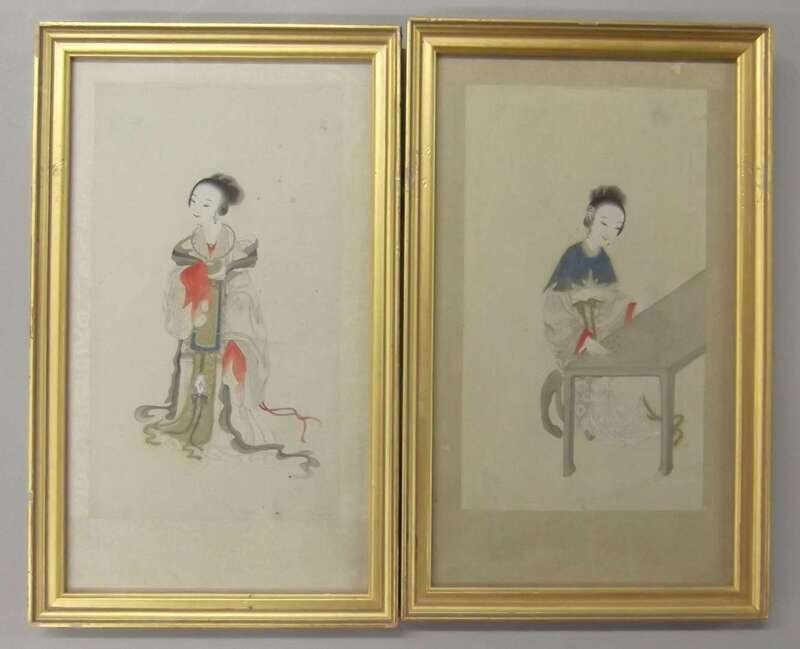 Four Chinese female attendent paintings, shi nv tu qing dynasty