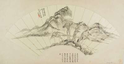 HUA SHI FANG (1854-1905) dated 1900 Fan painting of a mountain and river landscape