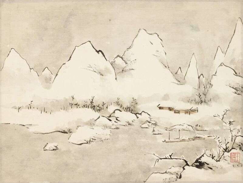 Album leaf, ink and wash on paper, with one artist sealmark: Wang Jiqian.