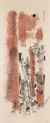 FREDERICK WONG (B.1929) Alley at sunset framed lithograph