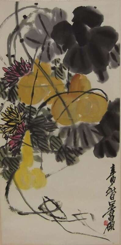 Hanging scroll, ink and color on paper, H 26 1/2 inches W: 13 1/4 inches