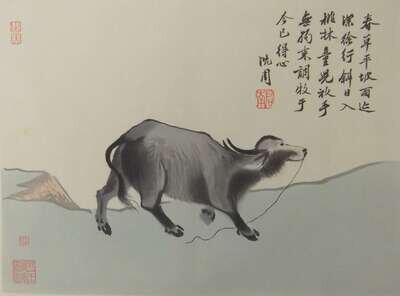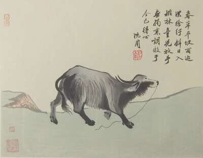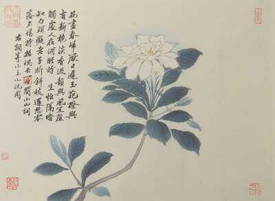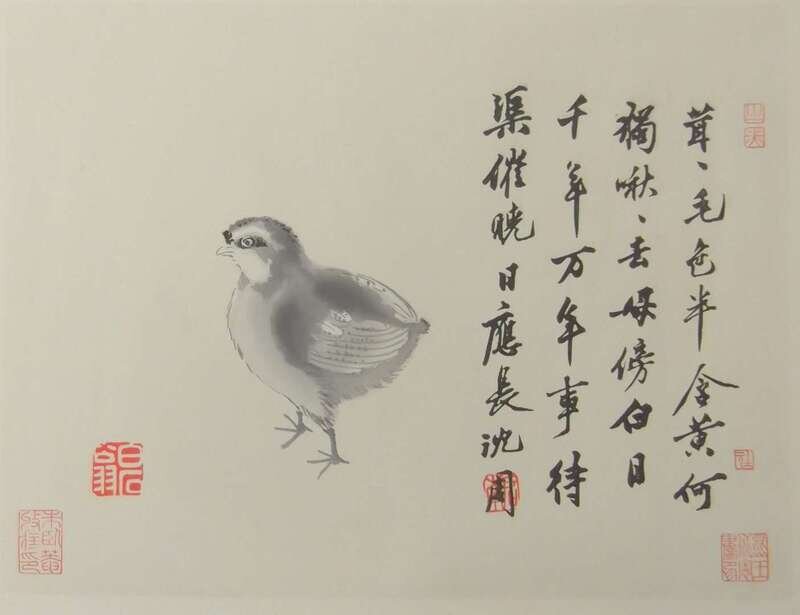 Published by Rong Baozhai Xinji, Collected by Zhongyang Renmin Zhengfu Wenhuabu, 18 pages depicting animals and flowers, with a bio page.
