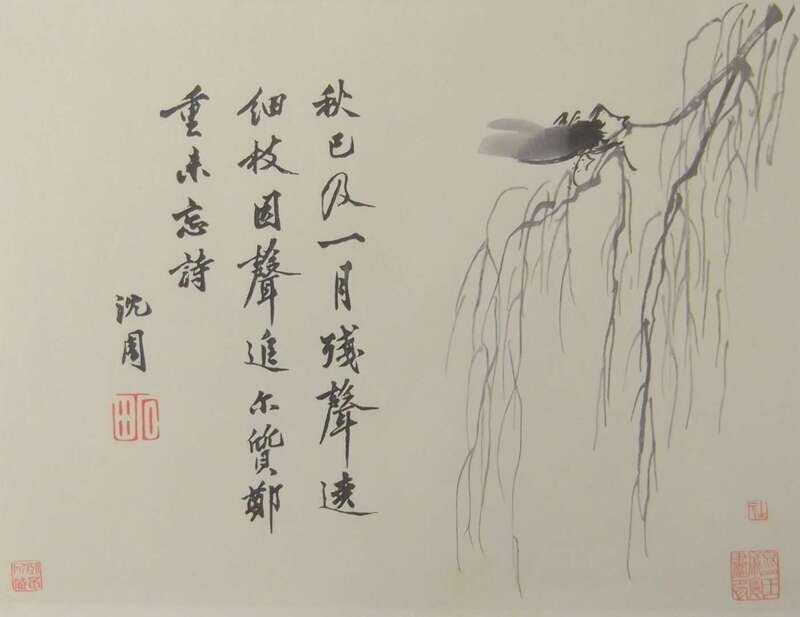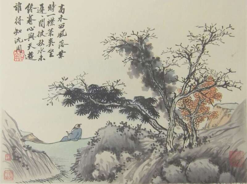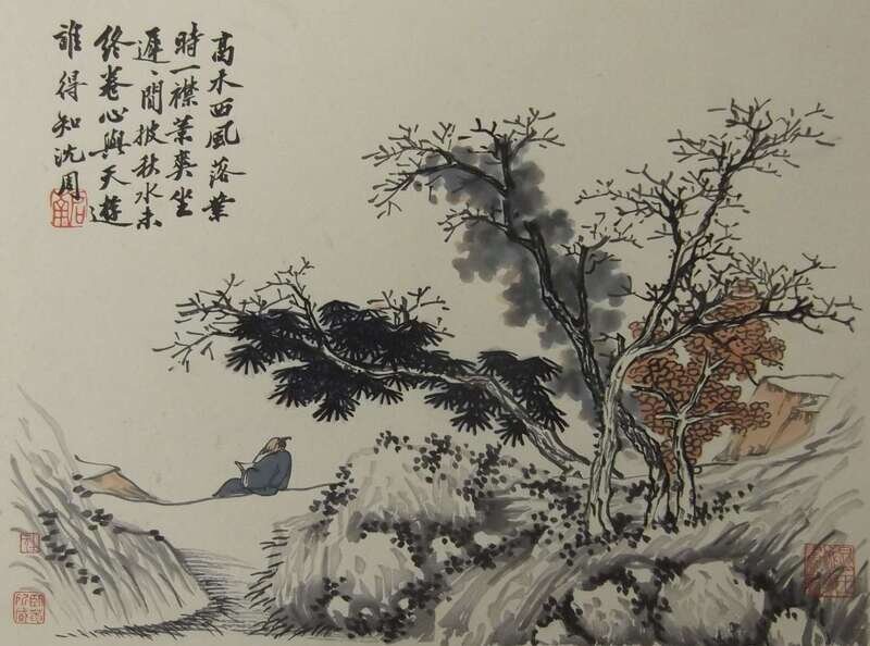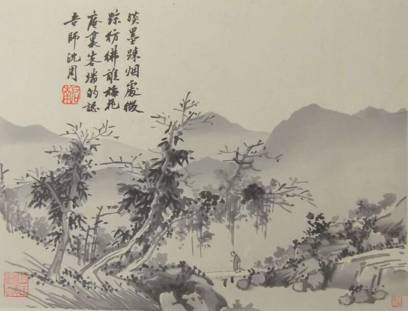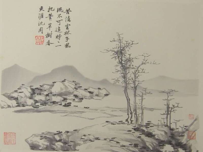 Folio of Shen Chou woodblock album prints by Rong Baozhai "Wo You" series