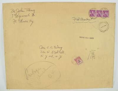 Ink on paper, within envelope from Dr. John Teheng addressed to C. C. Wang, H: 50 inches