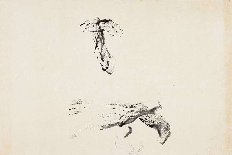 Series of thee, framed, sumi ink on paper, No. 23, 27, 28; H: 37 x W: 24 3/4 inches
