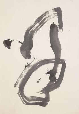 Wood frame, sumi ink on paper; with gallery tag to reverse reading Sawarigi-cho Kuromon-Higashi Kyoto Japan 1963; No. 15; H: 36 3.4 x W: 25 1/2 inches.