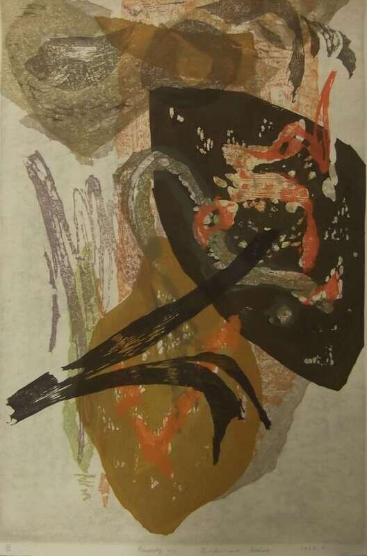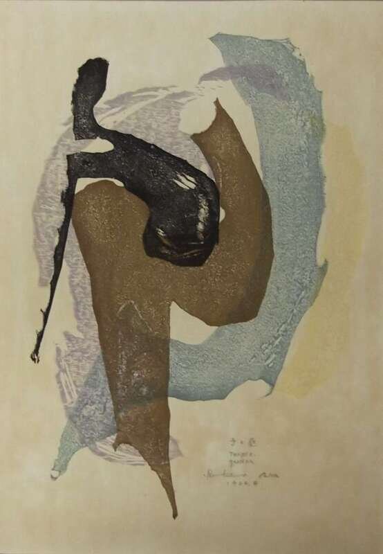 Eache signed Rikio Takahashi, including 1960 'Lyric of Kyoto' No. 28/50; 1960 'Lyric of Kyoto' No. 40/50; 'Lyric of Kyoto' 41/50; 1962.3 Rhapsody No. 1 24/50; 1961 'Nostalgia' No. 6/50; 1962.3 Rhapsody No. 1 21/50; 'Rhapsody No. 1' 1962.3 23/50; 'Lyric Kyoto No. 4' 14/30; 'Lyric Kyoto No. 4' No. 8/30, matted "temple Garden" 1924. 4 16 1/2 x 12 inches (10).