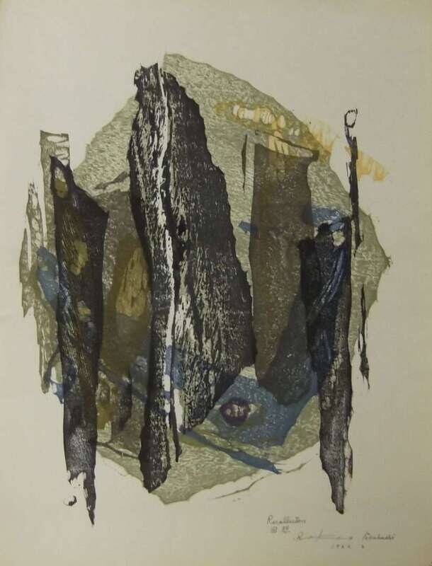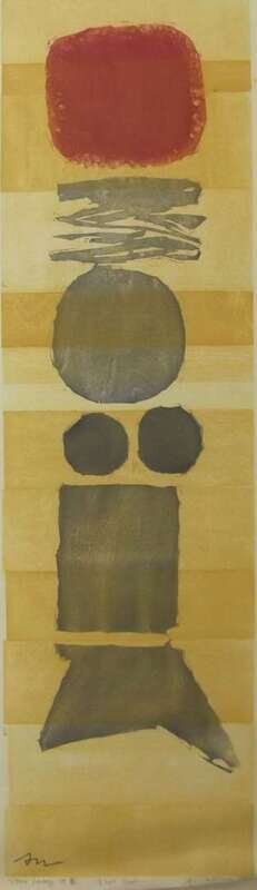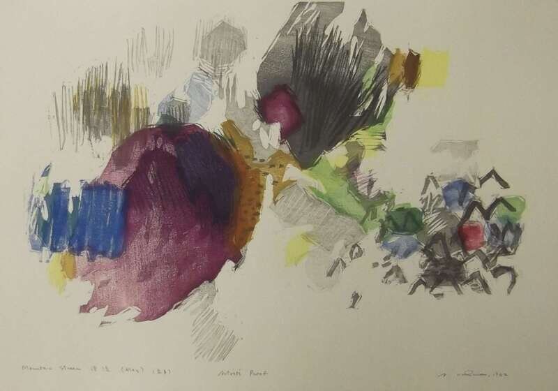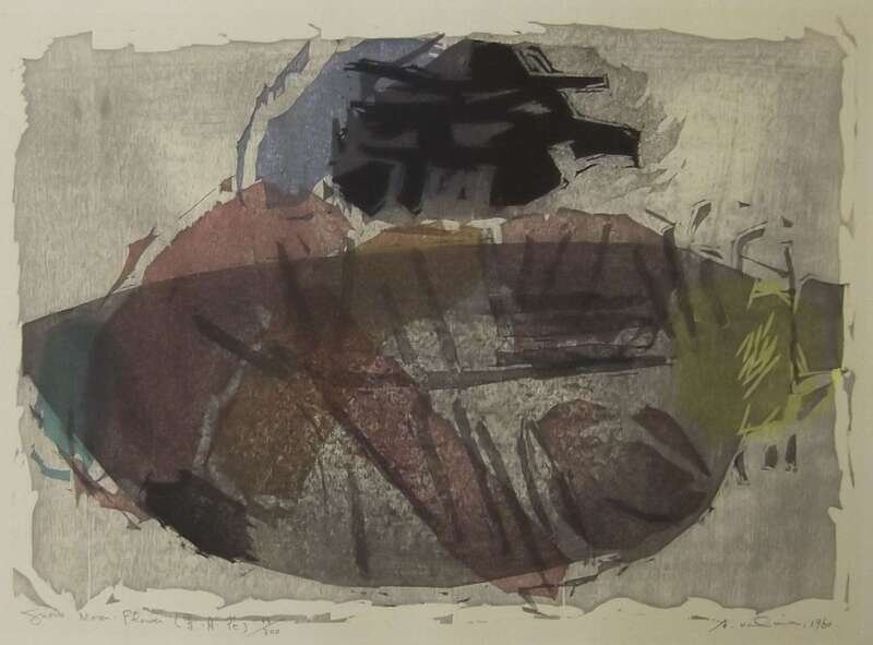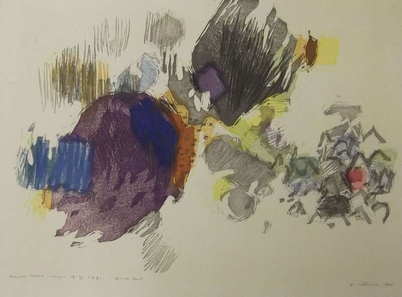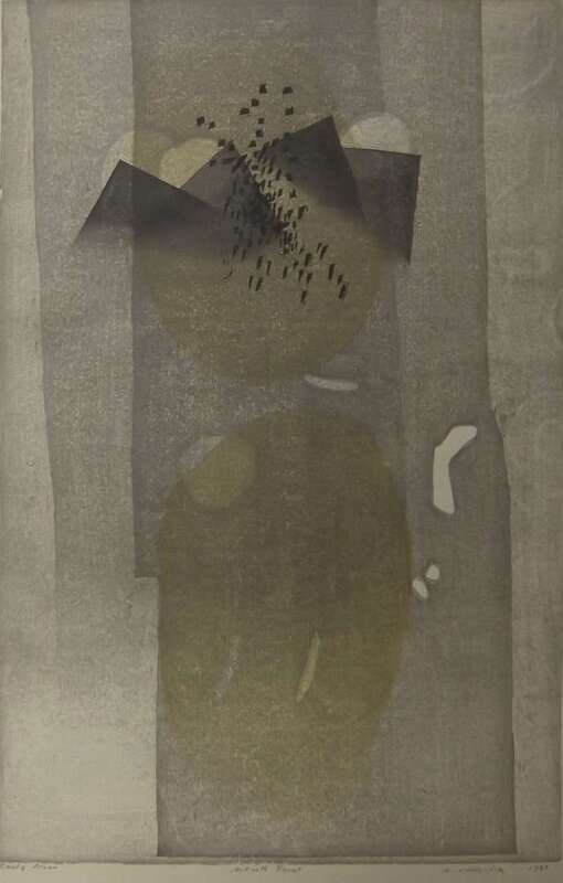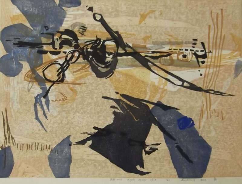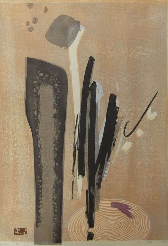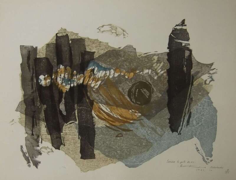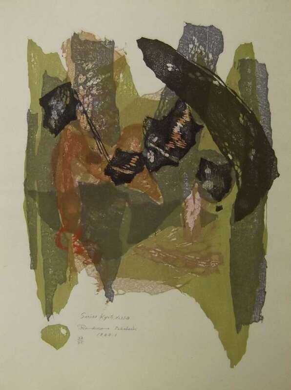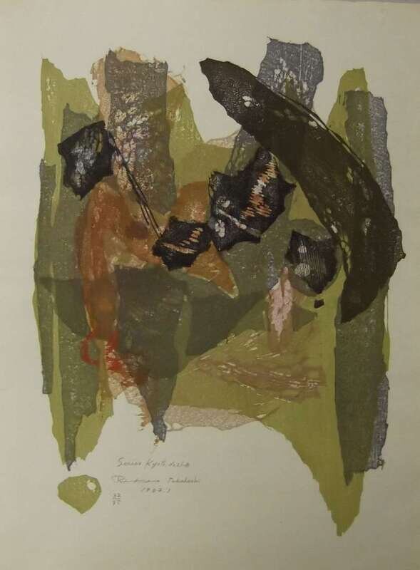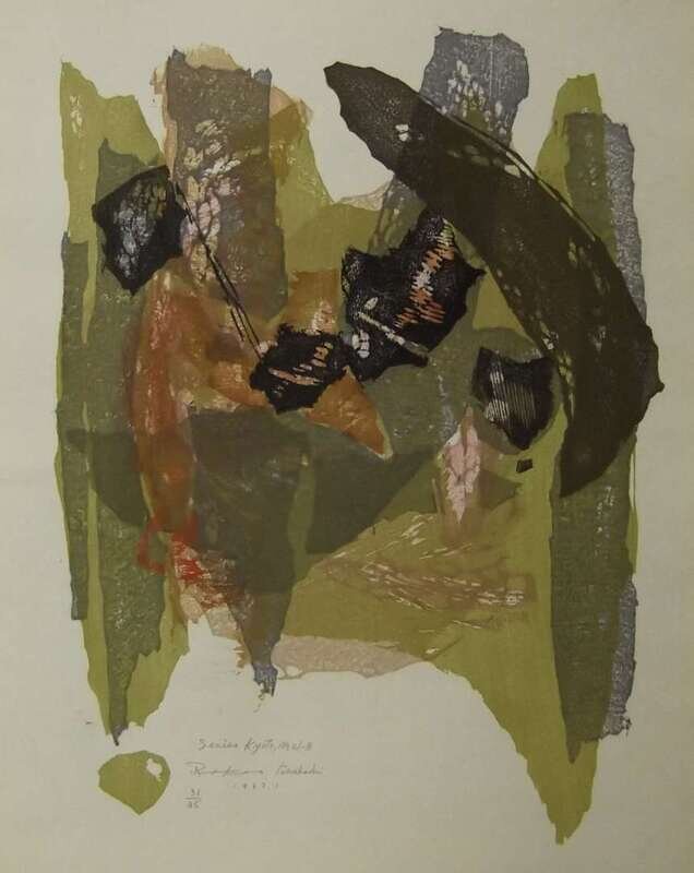 Including an exhibition poster by Seong Moy (b.1921); Rikio Takahashi woodcut print 'Series Kyoto' No. 21-B No. 28/35, 31/35, 32/35 and 34/35 'Series Kyoto' dated 1961 No. 1/50 and 7/50, dated 1962; 'Music (nho play. A) dated 1960 No.14/30; 'Recollection' 1962 No. 4/50 and 11/50; 'kyoto series No. 15' dated 1960 No. 9/50; each 25 x 19 3/4 inches (31).