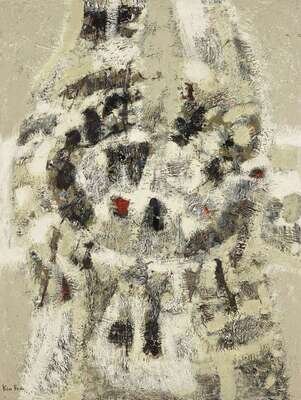 Oil on canvas, signed lower left Kim Foon, H: 40 x W: 30 inches, with Schuman gallery tag to reverse