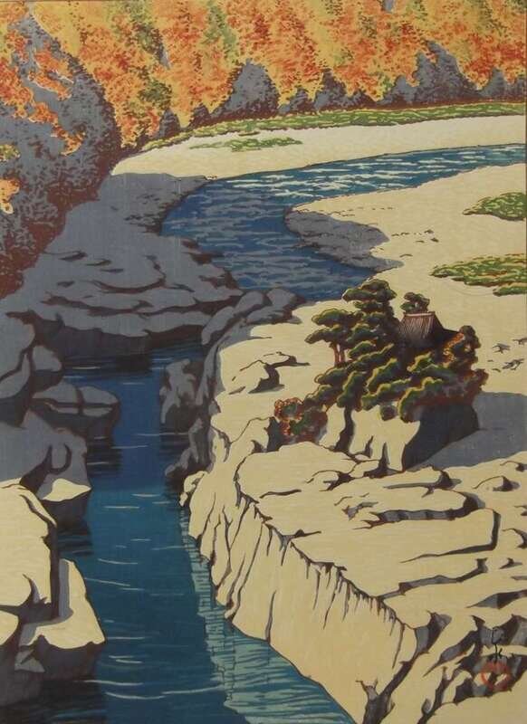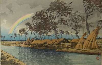 Two Hasui Kawase on mat 1924, 14 x 9 inches, and a Yoshiwara on mat 14 x 9 inches (3)