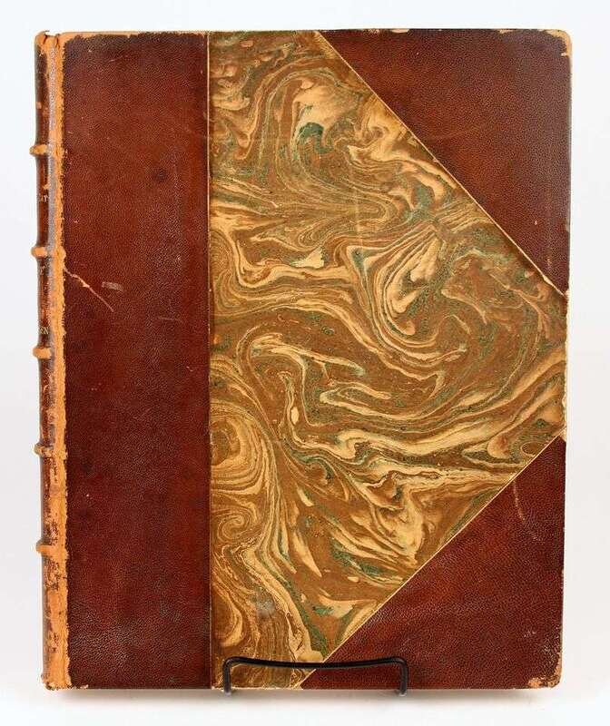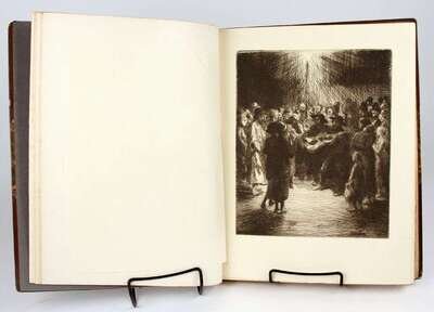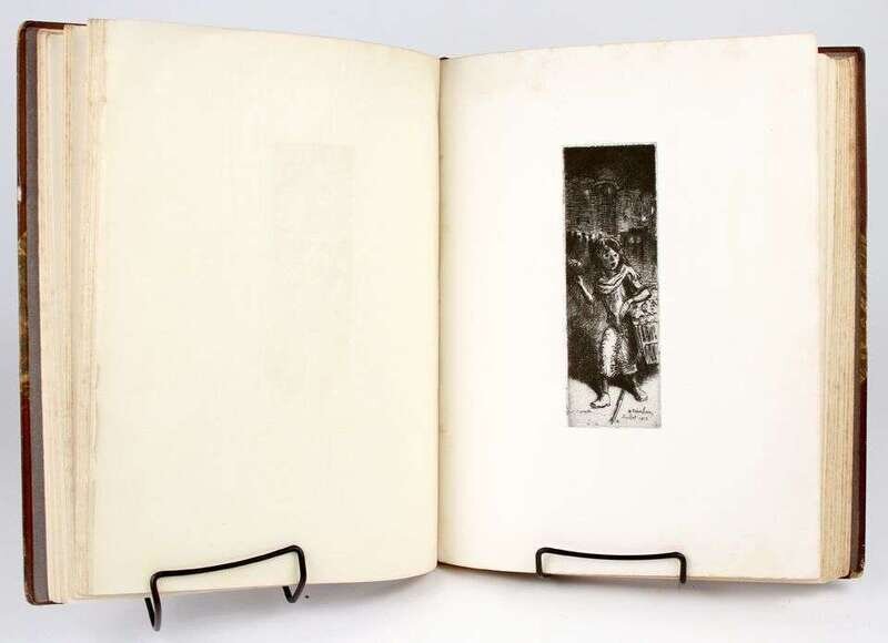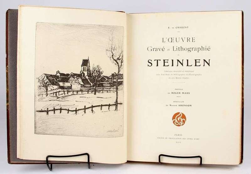Crauzat, Ernest de. L'Oeuvre gravé et lithographié de Steinlen. Paris: Société de Propagation, 1913. #4/500 (of 575). Folio, contemp 3/4 morocco & marbled bds; joints & extremities rubbed, orig wrappers preserved. Plates, other illus (incl orig aquatint, drypoint & etching by Steinlen), tissue guards. Minor dust smudging at head of a few upper margins, but internally generally clean.