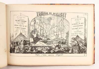 Galletti, [R]. Salon de 1861. Album caricatural. Paris: Librairie Nouvelle Bourdillat, n.d. [ca 1861]. Oblong 4to, modern marbled bds, orig yellow pictorial wrapper preserved; some edge wear. Illus throughout. Very slightly toned.