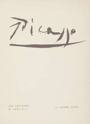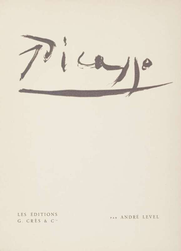(Picasso, Pablo.) Level, Andre. Picasso. Paris: G. Cres, 1928. 1/120. 4to, orig lettered cream wrapper; spine darkened, edges a little dust soiled, minor chipping to spine, front wrapper joint just starting to separate. With orig litho frontis, tissue guard, 2 color plates & 60 plain plates. Internally generally clean & crisp.