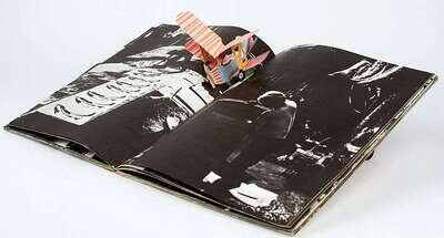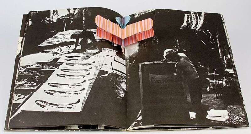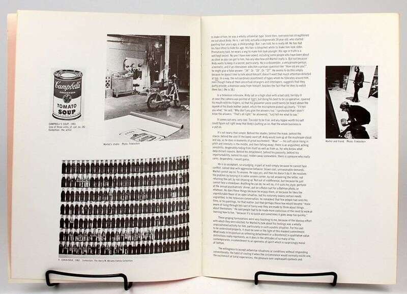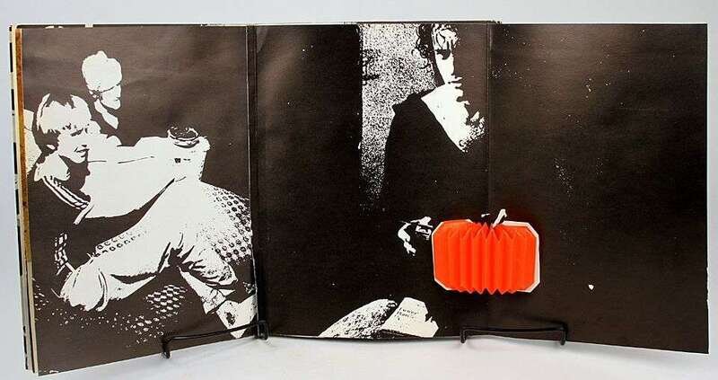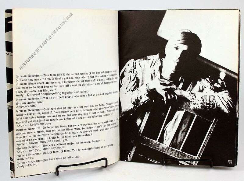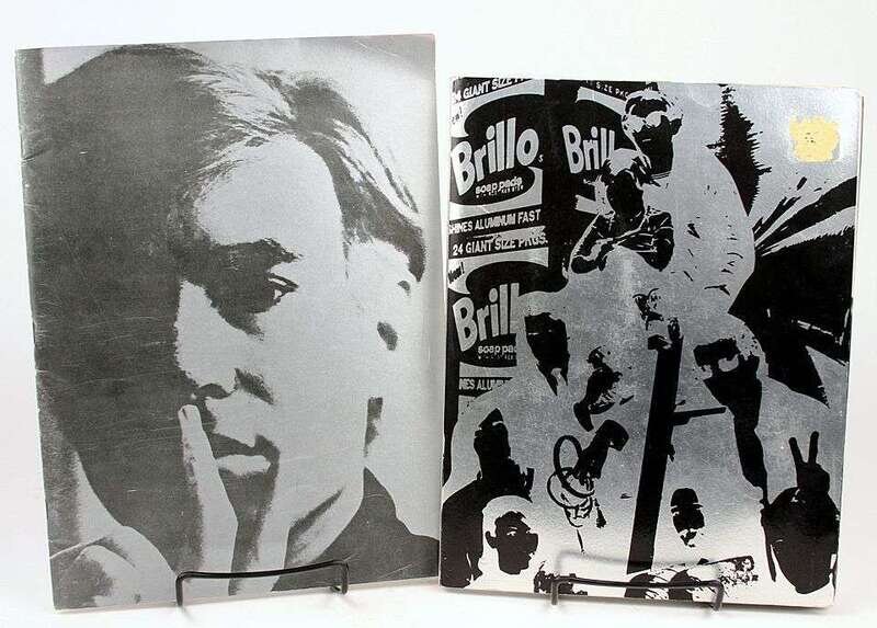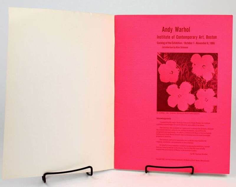 Warhol, Andy. Andy Warhol's Index Book. New York: Random House, 1967. 1st ed, 1st ptg. 4to, pictorial foil stiff wrappers; rubbed with remnants of orig price tag on front cover, edge wear, binding slightly loose. Incl pop-ups of castle, airplane, red accordion (not audible) and Hunt's tomato paste can. Inserts include Chelsea Girls wheel still affixed to spring; folded geodesic dome retaining original rubber band and attached to page; detached but intact 45-rpm flexi-disc with portrait of Lou Reed, which plays a supposedly unrecorded song by Nico and the Velvet Underground; nose illustration and colored overlays on a double-folded page. Lacking balloon (with discoloration to facing "blanks" from adhesive) and sheet of tear-outs. With photographs by Nat Finkelstein and Billy Name. * [Institute of Contemporary Art, Boston.] Andy Warhol: Catalog of the Exhibition. Boston, 1966. 4to, original wrappers. Illus.