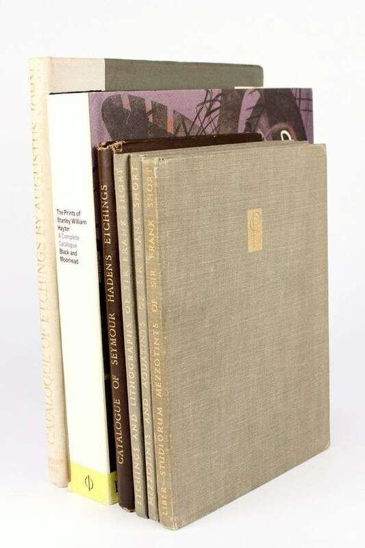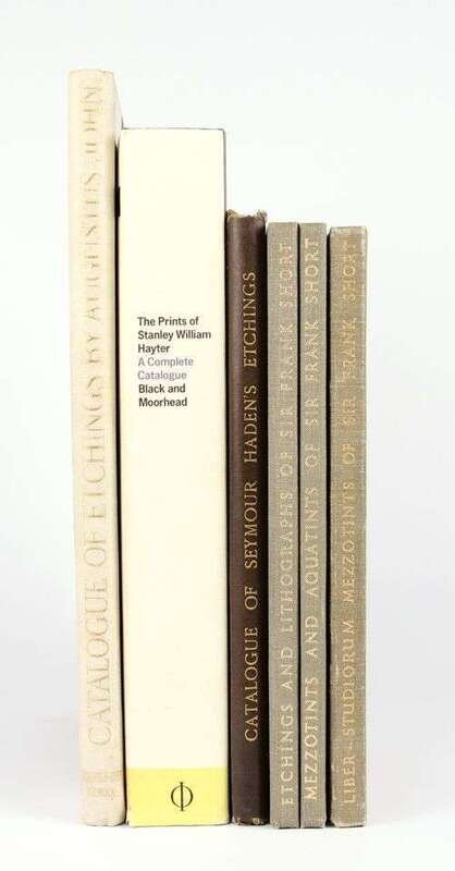 Graphic Art Reference - Catalogues Raisonne &C - British Printmakers: Dodgson, Campbell. A Catalogue of Etchings by Augustus John 1901-1914. London: Chales Chenil, 1920. #22/325. Lg 4to, orig white cloth & green bds, gilt-lettered spine, t.e.g., other edges untrimmed. Portrait frontis, illus throughout. Attractive copy. * Drake, William Richard. A Descriptive Catalogue of the Etched Works of Francis Seymour Haden. London, 1880. 8vo, orig cloth; joints & extremities scuffed, minor foxing. Tall, attractive copy. * Black, Peter; Moorhead, Desiree. The Prints of Stanley William Hayter. A Complete Catalogue. [London: Phaidon Press, 1992]. Thick 4to, orig cloth, d/j. Color plates, other illus. Minor wear. * Hardie, Mertin. The Etched amd Emgraved Works of Sir Frank Short. London: The Print Collector's Club, 1938-1940. Vols 1-3. Sm 4to, orig cloth, gilt; light wear. Plates.
